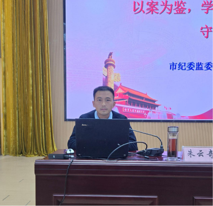 会议结束后,由市纪委监委第十纪检监察室副主任朱云奇同志为与会人员做党纪学习专题讲座,市城管局党组书记、局长宫传敏主持讲座。朱云奇以“以案为鉴,学法纪、知敬畏、守底线”为主题,从“当前反腐败斗争形势及2025年全市纪检监察工作任务、典型腐败问题分析、典型作风问题分析、典型责任问题分析、警示教训”等五个方面,紧密结合当前全国、全省、全市反腐败斗争形势和典型案例,给全体人员上了一堂生动精彩、内容厚重、发人深省的廉政教育课。