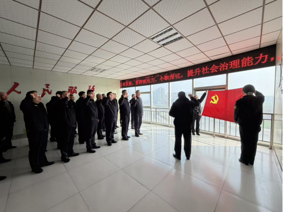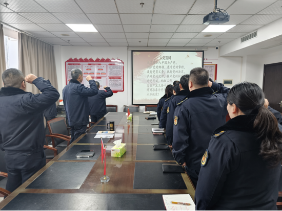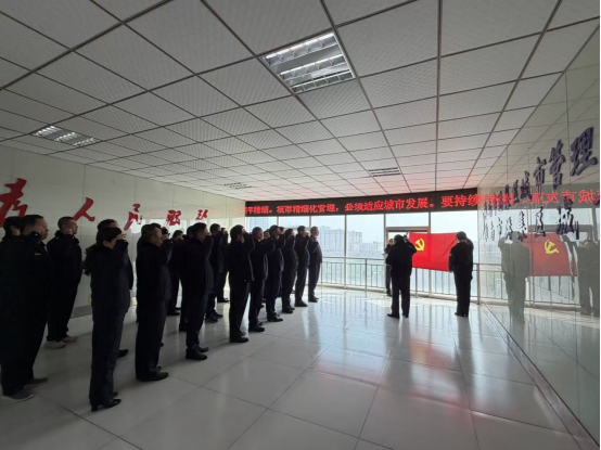 上午8时,市城管局机关党支部在会议室举行主题党日活动,全体党员庄严肃立,先后举行了迎国旗、唱国歌、重温入党誓词、合唱自主创作的《人民城管之歌》等仪式。通过系列活动进一步强化党性修养,激发奋进力量,凝聚推动城市管理高质量发展的强大合力。